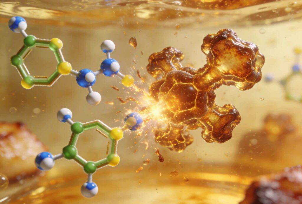 The Maillard reaction unfolds across three sequential stages. Stage one: a reducing sugar’s carbonyl group (C=O) reacts with an amino acid’s amino group (NH2) to form an unstable Schiff base, releasing one molecule of water. Stage two: that Schiff base rearranges into a more stable Amadori product (or Heyns product, if the sugar is a ketose), which then fragments into dozens of reactive intermediates – deoxyosones, α-dicarbonyl compounds, and furfurals. Stage three: those intermediates recombine, cyclize, and polymerize into melanoidins (brown pigments) and hundreds of low-molecular-weight volatile compounds responsible for flavor and aroma.